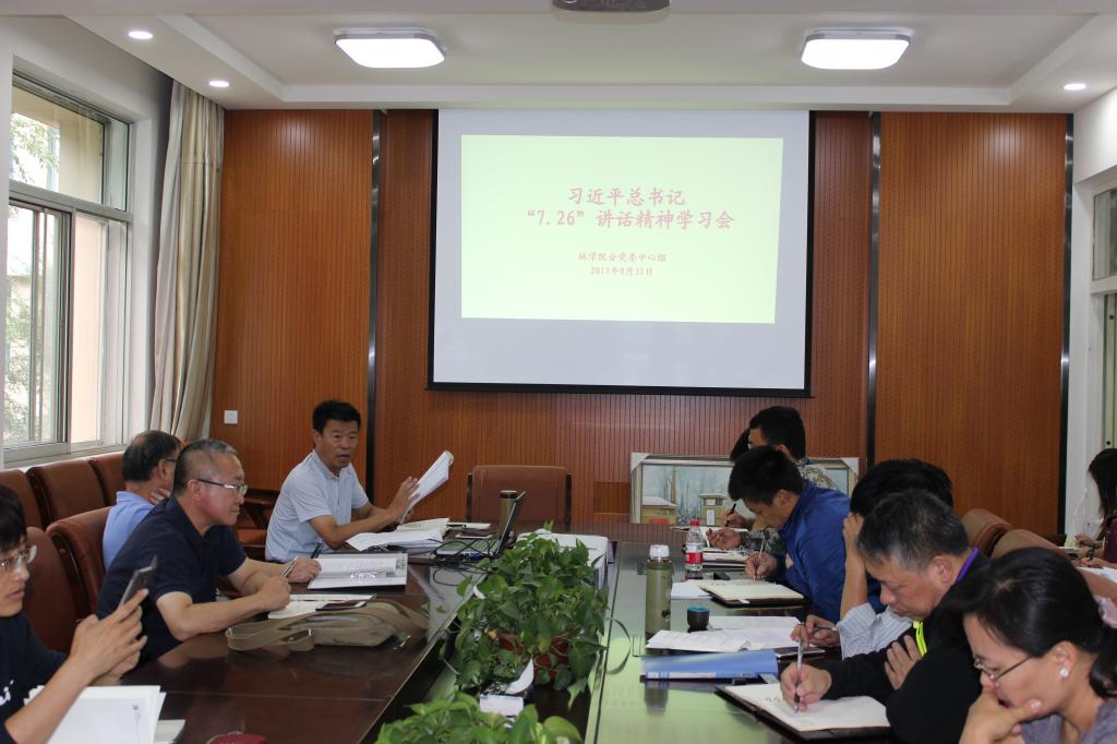 会议最后吴书记强调:全院师生要牢固树立“四个意识”,把学习“7.26”讲话精神作为当前重要的政治任务,真正做到武装头脑,指导实践,把学习“7.26”讲话精神与学习思政会议精神结合起来,以积极的姿态迎接党的十九大召开,通过学习更好地推动学院学科教学工作审核评估、学科评估及“双一流”建设等重点工作。