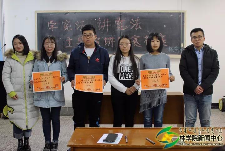 比赛伊始,主持人张乐致开场词,宣读本次比赛的评分标准。随后,参赛的17位选手按照事先安排好的顺序依次上台演讲,在此过程中,参赛选手们都围绕着此次比赛主题各抒己见,他们吐字清晰,声音洪亮,充分表达出了自己对《宪法》的认识。接下来,辅导员张磊对选手的表现做了简单的点评。最后,选手王玉海拔得头筹,获得一等奖,裴思函与刘志勇分别获得二等奖和三等奖,三位辅导员上台为他们颁奖并合影留念,此次比赛圆满结束。