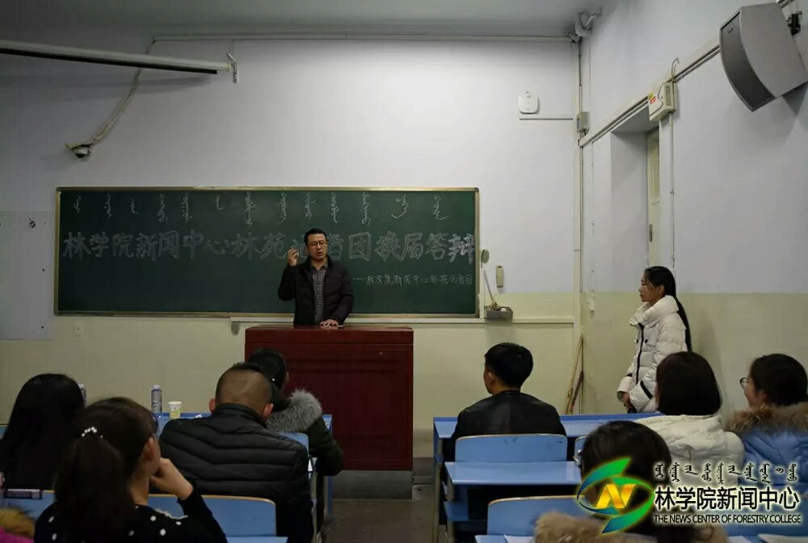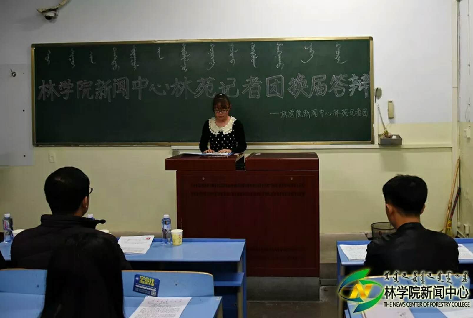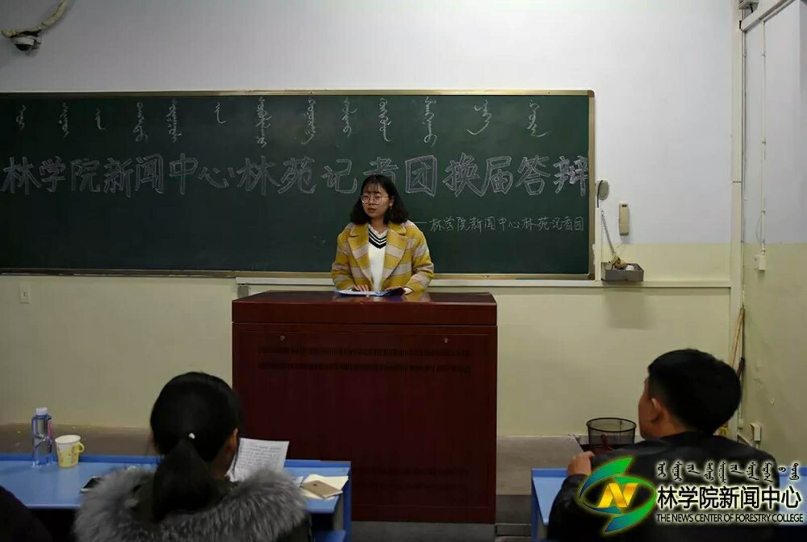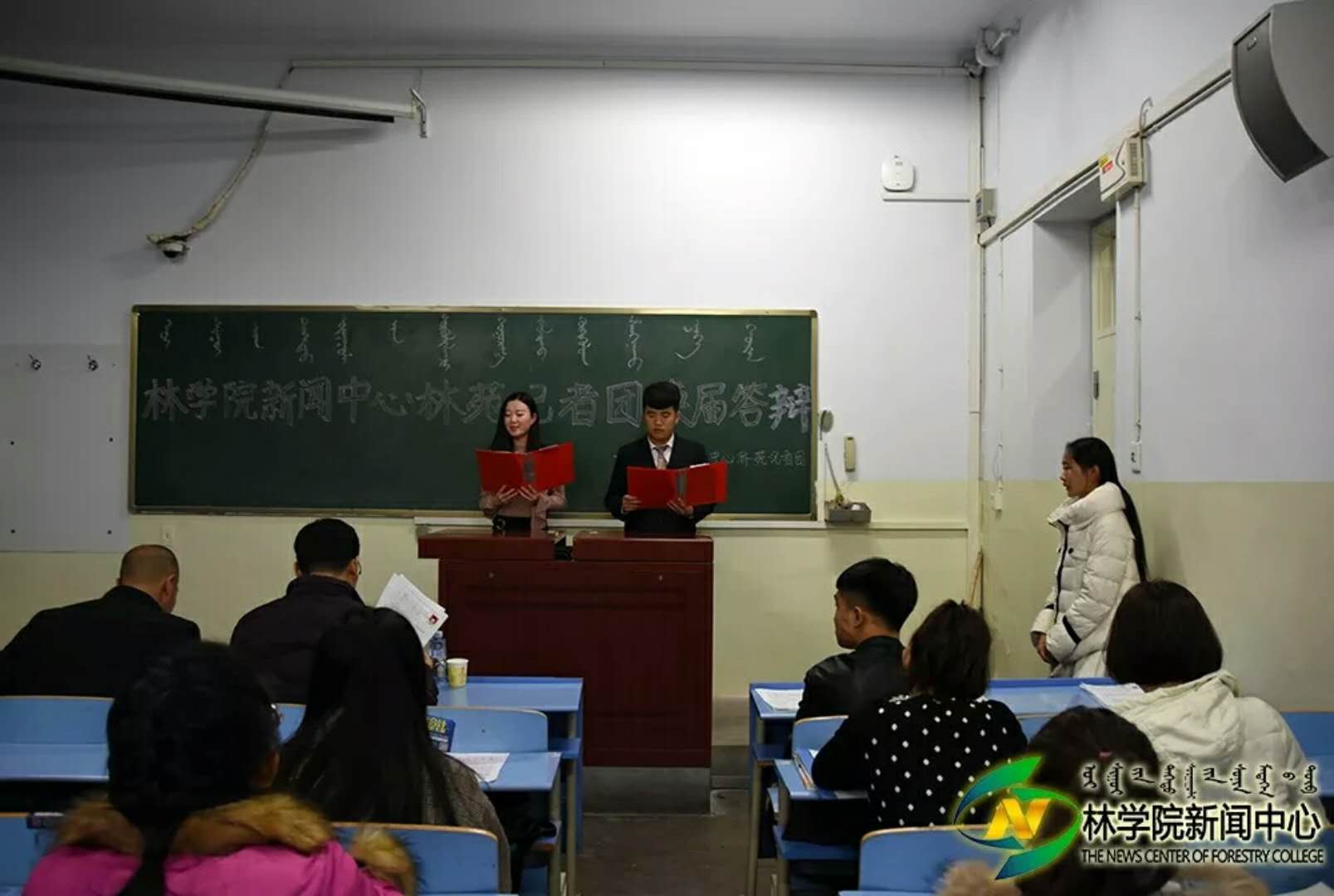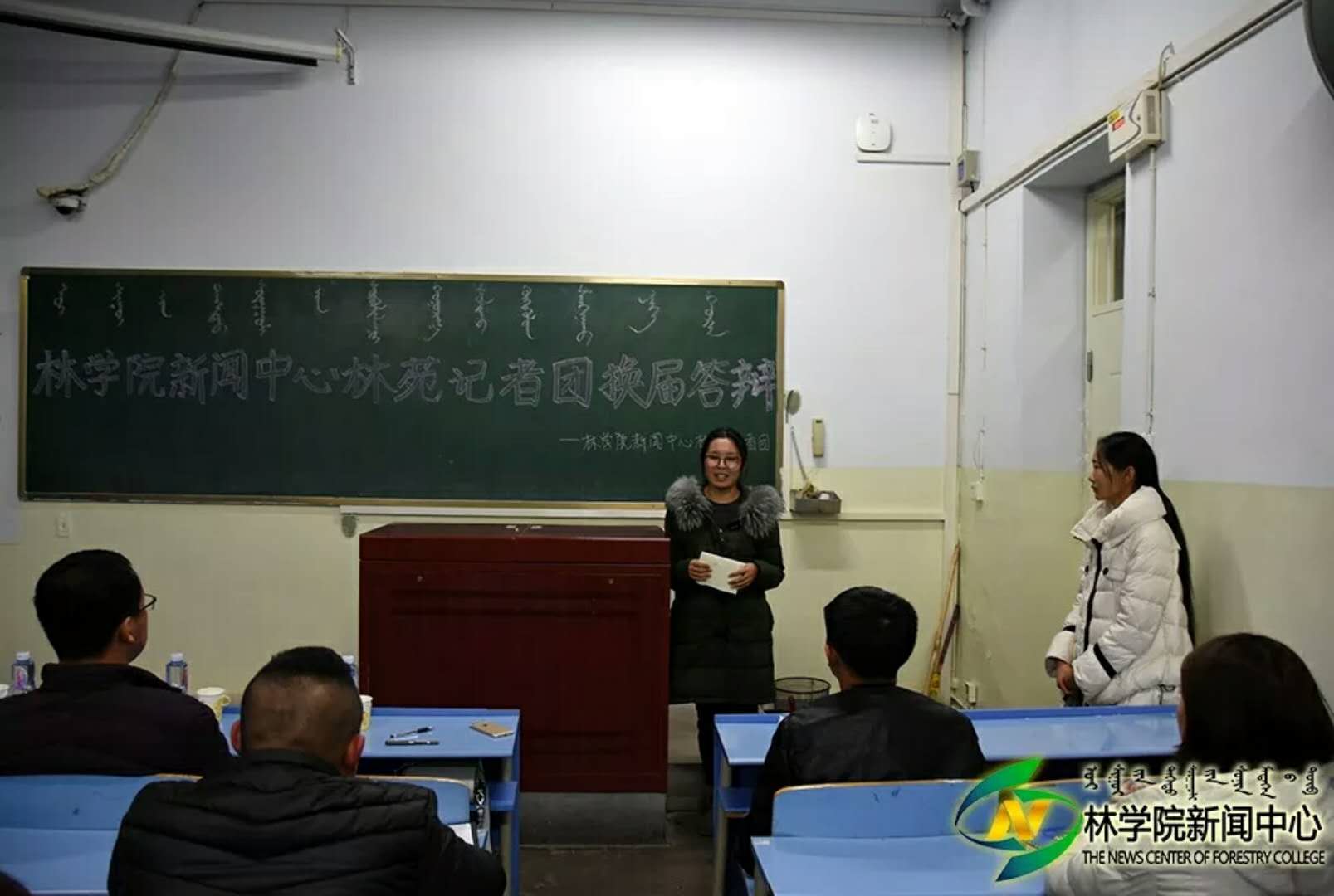 主持人宣布会议开始,老生代表、新生代表分别上台分享了自己的独特认识与体验,团长张国强对新闻中心的工作做了总结发言,并向即将产生的新一届新闻中心团部给予了厚望。紧接着,换届答辩开始,各部部长、干事在竞职演讲中,都做了充分准备,发言或慷慨激昂,或自信乐观,他们在阐明自己的工作热情的同时,对新闻中心今后工作的开展以及管理做了详细规划。之后,王书记发表讲话,他对新闻中心的工作成绩进行了肯定,为校园里有一群记者默默执笔耕耘,辛勤付出感到欣慰,同时对新闻中心未来的发展提出了自己的期望和要求。他提出,“新闻中心要全面做好‘传’、‘帮’、‘带’的工作,作为一名新闻记者,要有责任心,做好各项会议记录,细化量化考核标准,报道新闻做到真实、准确、及时,提高工作效率。”老师铿锵的语言、谆谆的教诲,是记者团不断奋斗的明灯和前进的动力,接着冯老师对大家也给予了深切的厚望,她强调:“新闻工作要做到‘大胆’、‘创新’、‘责任’、‘谋划’这四方面,”冯老师亲切的言语为新闻中心进一步的工作指明了方向。紧接着,现场还表彰了在工作中涌现出的优秀新闻工作者,李瑾、周慧荣荣获“最佳妙笔奖”、金元元、庄宏元荣获“最佳奉献奖”,王家坤、张文浩荣获“最佳敬业奖”,张敏荣获“最佳摄影奖”,乌日汗、李文博荣获“优秀记者奖”,门金艳荣获“林苑新闻奖”、技术部、图片部荣获“最佳团体奖”,老师及团长们对受表彰的优秀新闻工作者和优秀团体颁发了荣誉证书及奖品,并鼓励他们要再接再厉,继续做好新闻宣传工作。