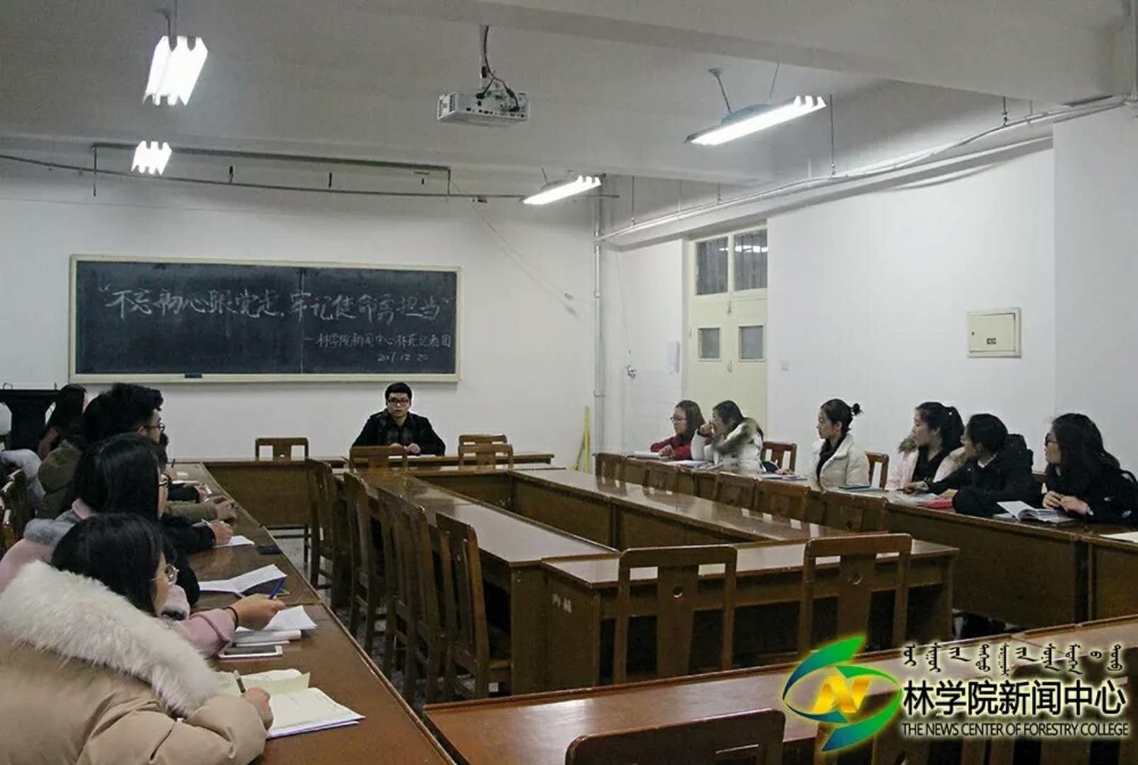 为贯彻党的十九大精神,将智慧力量凝聚到十九大确立的奋斗目标上来,12月20日晚7:00,我院新闻中心林苑记者团于bt365官方网站311报告厅开展了以“不忘初心跟党走,牢记使命勇担当”为主题的研讨会,参加本次研讨会的有bt365官方网站新闻中心林苑记者团团长任重、办公室主任刘妍及2016级全体记者团成员。